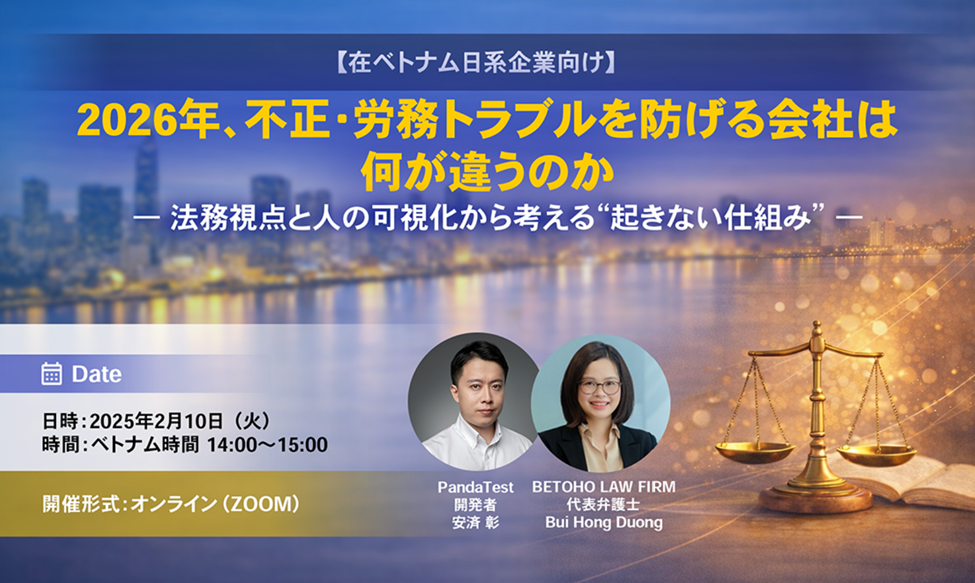 2026年を前に、ベトナムに進出する日系企業の間で、社内不正や労務トラブルの「起きやすさ」に大きな差が生じつつあります。