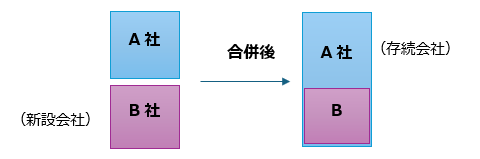 一方の会社(被吸収会社)のすべての資産・権利義務が、他方(存続会社)へ移転します。被吸収会社は消滅し、存続会社はそのまま活動を継続します。