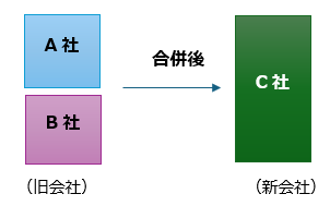 2社以上の会社が統合され、新会社が設立されます。旧会社はすべて消滅します。