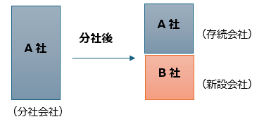 既存会社(分社会社)の一部の資産・権利義務・出資者/株主を切り出して新会社を設立しますが、